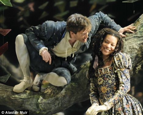 The image is of David Tennant and Nina Sosanya in a Royal Shakespeare Company production of As You Like It. They look lovely together, don’t they? If the Dark Lady sonnets were indeed autobiographical, might there once have been a scene like this played out in Shakespeare’s own life? We’ll never know for certain.