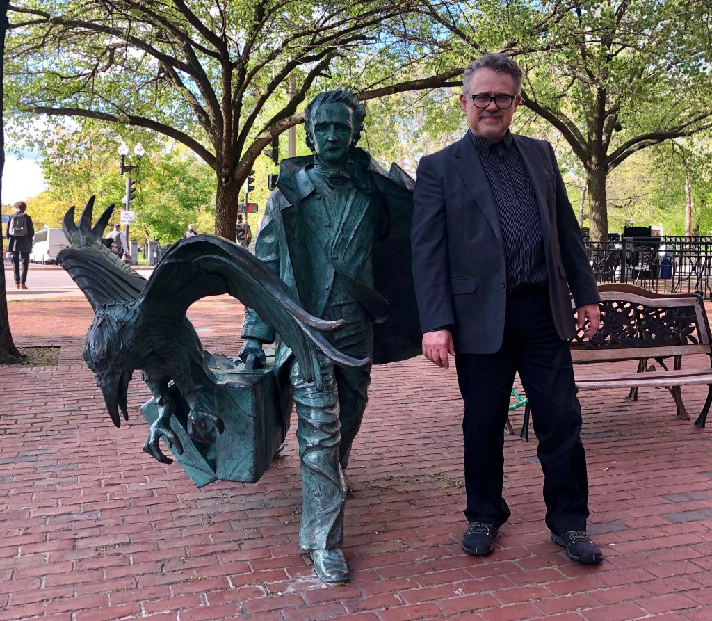 “You know what, Novotney? We don’t even know how Poe died. His bizarre death is a mystery wrapped in an enigma cloaked in a conundrum. The Father of the Modern Mystery left behind the single greatest goddamned mystery of American Letters.”