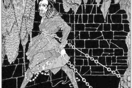 The image is taken from  Harry Clarke’s (1889-1931) illustration of poor Fortunato, chained up and ready to be sealed up alive.