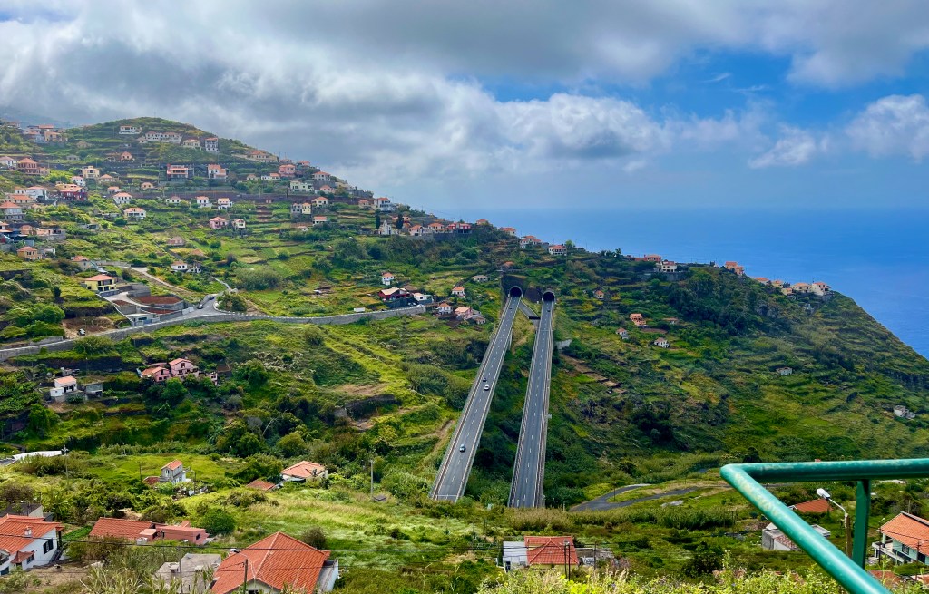Mary and I learned this difference firsthand. We took the scenic route from the capitol city Funchalo to our VRBO in Calheta. The older roads wind up and down the sides of mountains, along cliffs, and constantly braid themselves into hairpin turns.