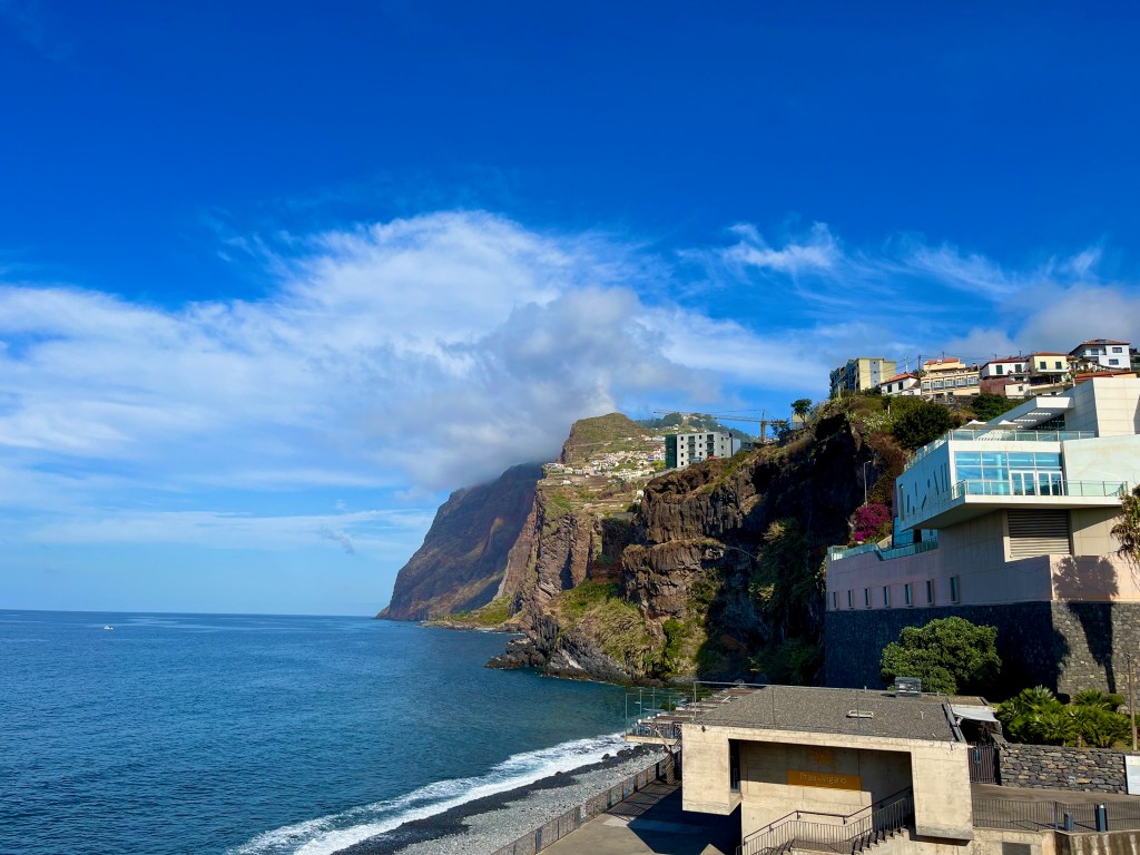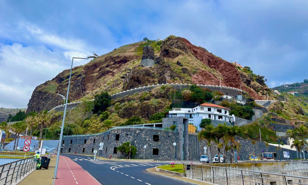 Madeirans live on the vertical. Here’s a shot of the downtown region of Camara De Lobos, where we stopped to visit a winery. The construction–from municipal buildings and hospitals–follow the contours of land.