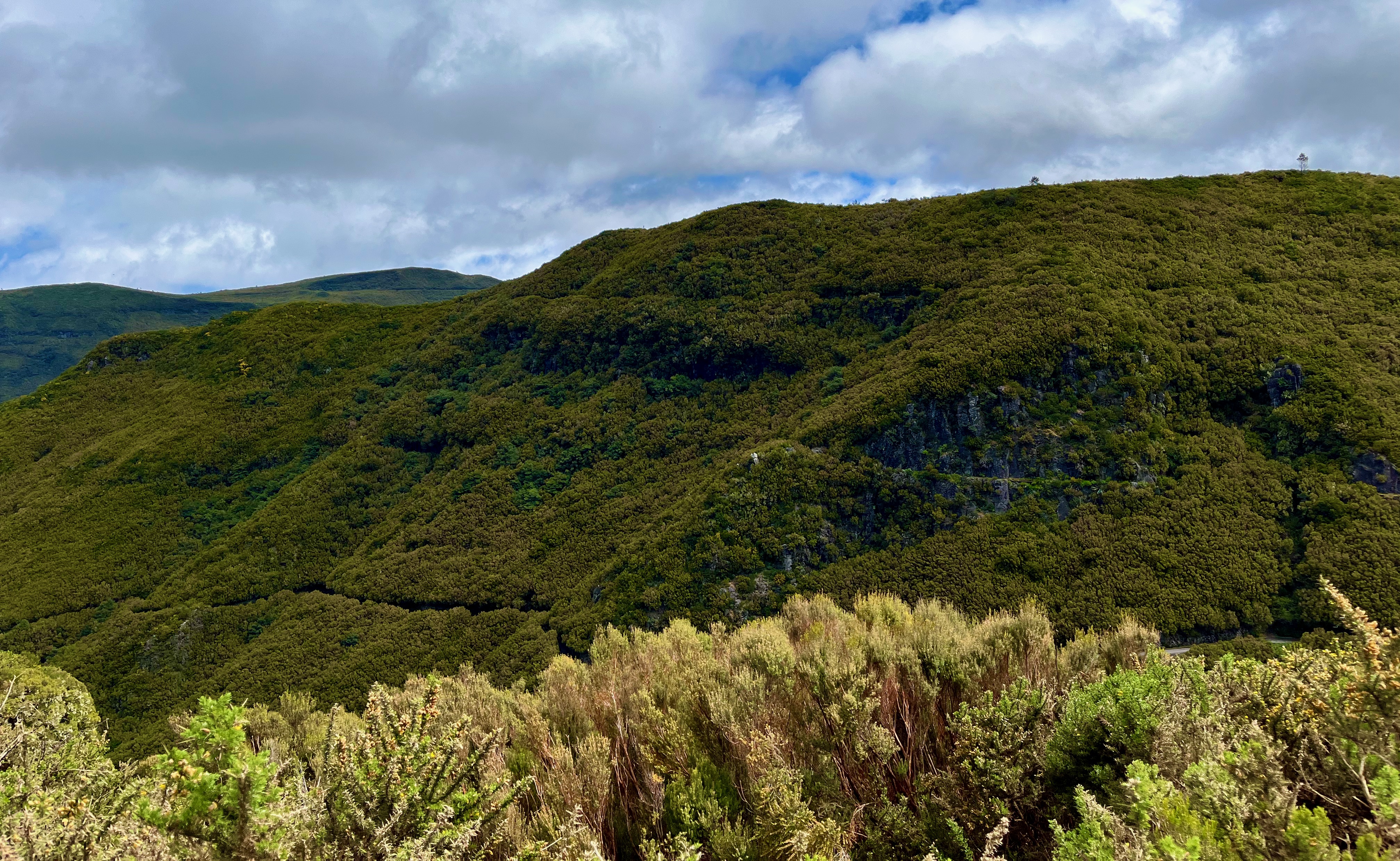 One one of our days Mary and I took a field trip into the mountains of Madeira near Rabaçal. This is looking down the southern side of the island toward the ocean, at about 4500 feet above sea level.
