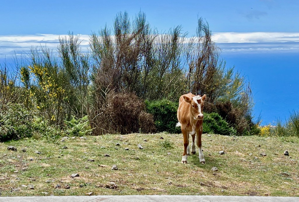 On our way to Rabaçal we encountered some cattle. Here’s a calf saying hello. Cattle graze up in the mountains and the Portuguese don’t believe in fences like Americans seem to. Yes, when hiking the levadas in this region you have to watch your step!
