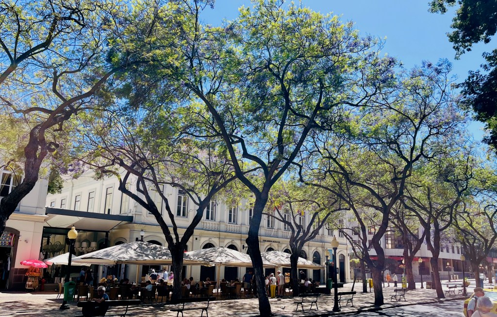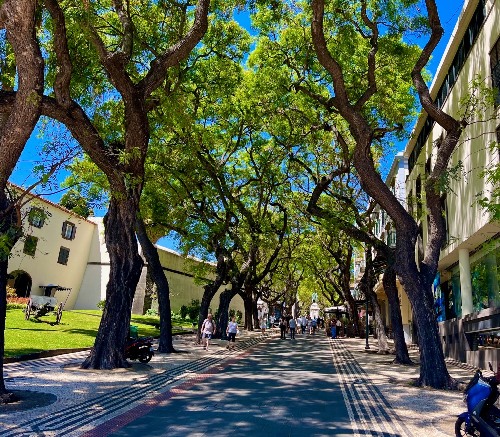 Funchal also has an exquisitely beautiful historical downtown. This treelined walkway leads up to one of its main squares.