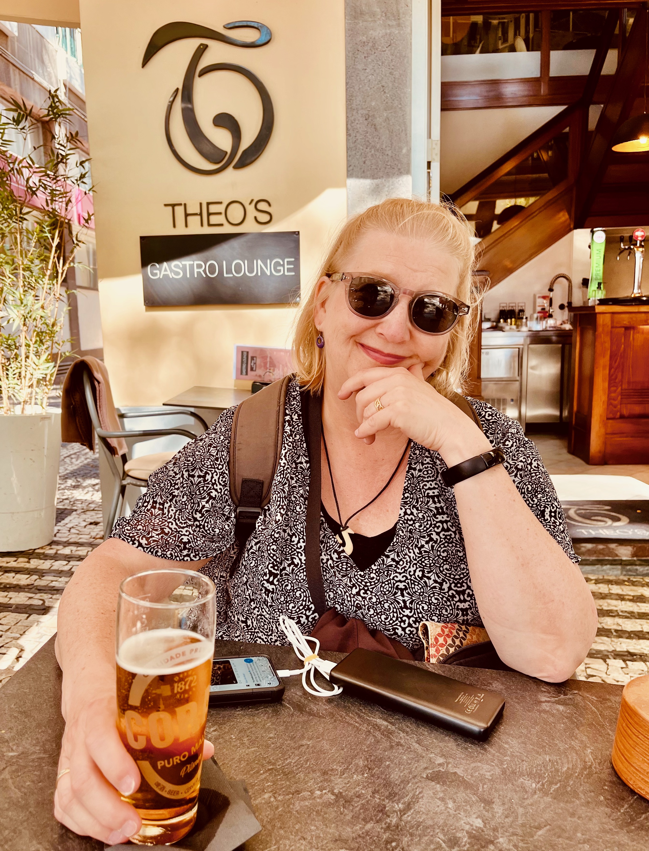 My sweetheart enjoying a local beer at a sidewalk café. There was a guitarist playing “Hotel California” right behind Mary. If this place is like Hotel California and we never leave, that’d be ok.