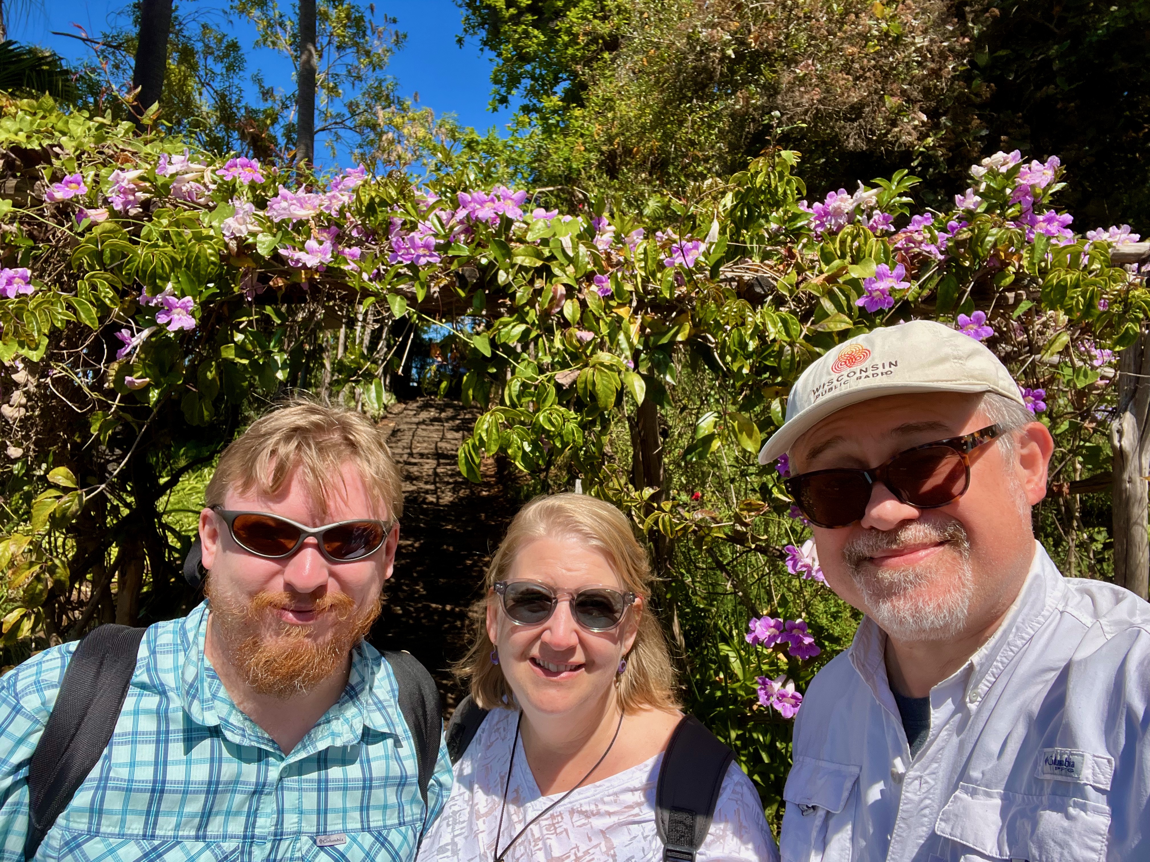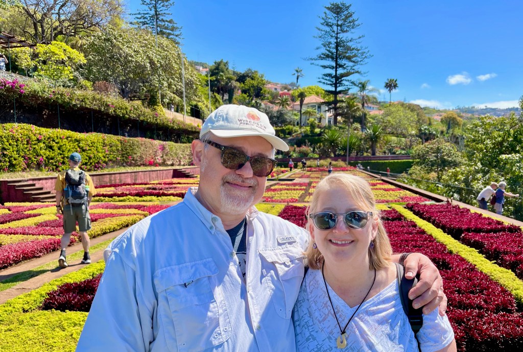 The cable car took us up to the Jardins Botanicos da Madeira. Here are Sam, Mary and I in front of the many flowering walkways.