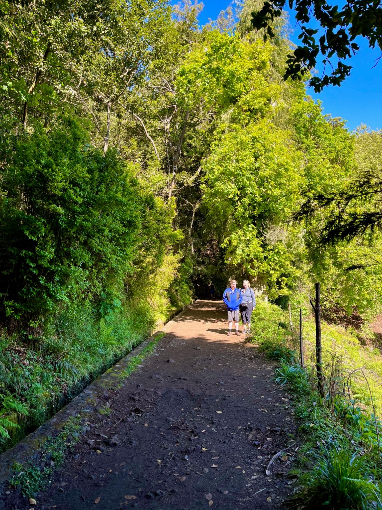Sam and Mary hiking along one of the levadas. It’s the narrow furrow running along the path to the right. What are levadas?