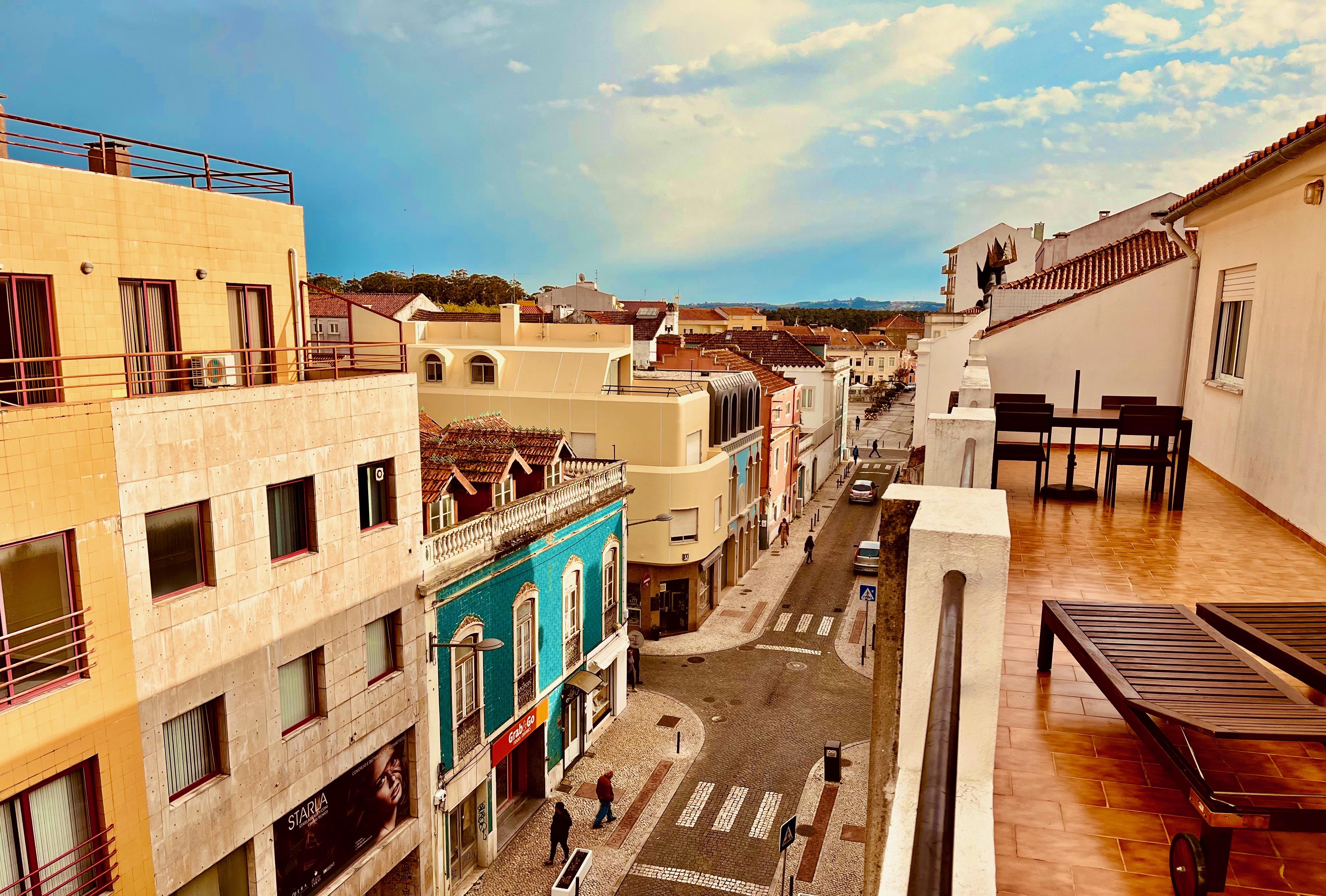 We first chose to stay in the town of Caldas da Rainha. This is the view of town from the balcony of our VRBO. Most Portuguese towns on the mainland date back into medieval times, and so the roads are narrow and lined with a mix of old and new, refurbished and falling down.
