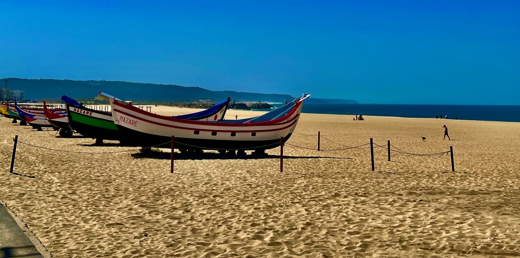 Mary and I took a day trip to drive to some local towns. Here’s a shot of the beach at Nazaré. You might recognize the name. Nazaré is world famous for its killer surfer waves. We did not visit that exact spot; those monster waves crash about half a kilometer north from this serene stretch. Below the surface of the ocean beyond some oceanside cliffs lies a deep rift in the ocean floor which helps create waves over one hundred feet high. No thanks.