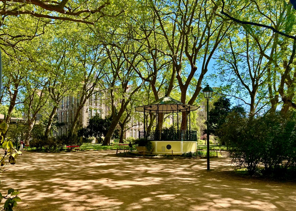 Don Carlos Park in Caldas da Rainha. In the background you can barely see the ruins of an old building.