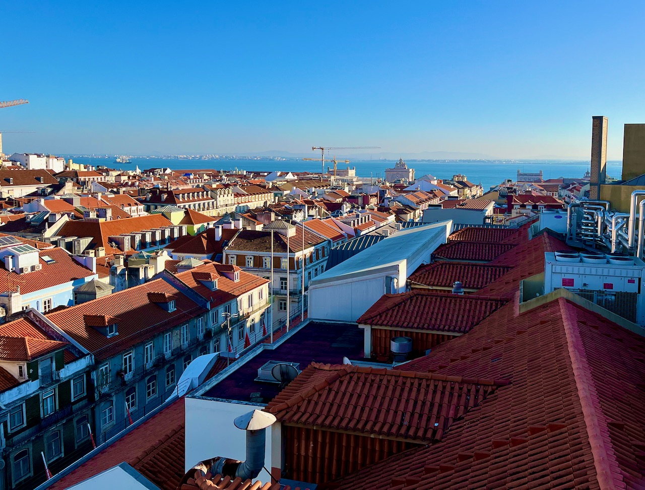 The red rooftops of Lisbon. Our stroll downtown took us to a bird’s eye view of the city. In the distance, the mouth of the Targus River as it empties into the Atlantic Ocean.