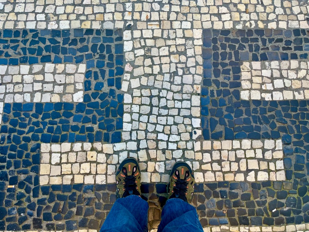 There are walkways and sidewalks all over Lisbon, but hardly any of them are plain concrete or asphalt. They are tiled. The designs are legion, many with a Moorish influence.