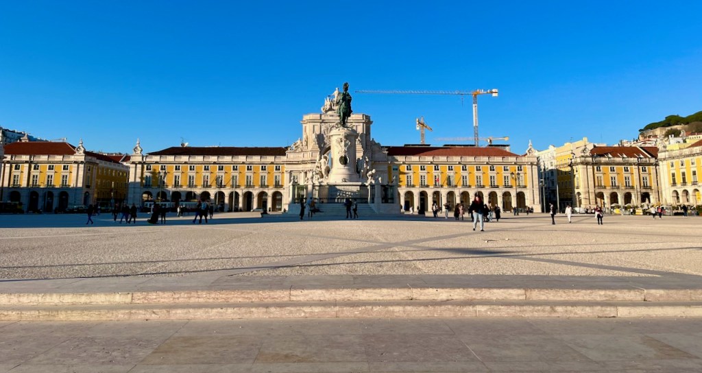 Mary and I hiked to Praça do Comércio, which translates to ‘Commerce Square.’ This is a large plaza right on Lisbon Harbor. This old square used to house an old Royal Palace, which was destroyed in the earthquake of 1755. In its place the then de facto ruler of Portugal, Sebastião José de Carvalho e Melo, 1st Marquis of Pombal, rebuilt the area as a center of commerce. The buildings you see in this photo are post-earthquake, about 250 years old. By European standards, that’s young.