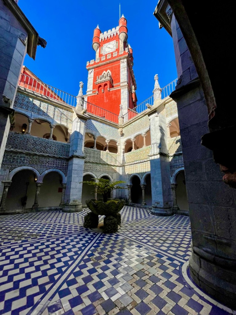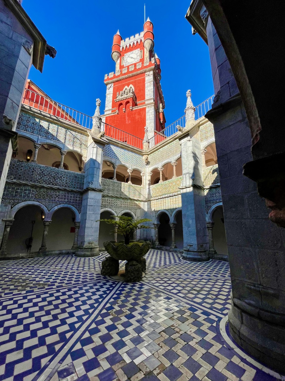 A view from the interior of Pena Palace, looking up at the clock tower. This interior section gives away the palace’s origins. Situated on a mountain, this place was originally a monastery. Just like Lisbon, that annoying 1755 earthquake reduced the monastery to ruins. Less than a hundred years later, in 1838, young King Ferdinand II was looking for something to do. He bought the land and commissioned an amateur architect to design a palace. The resulting gargantuan structure is a hodgepodge of styles–Neo-Gothic, Neo-Manueline, Neo-Islamic and Neo-Renaissance.