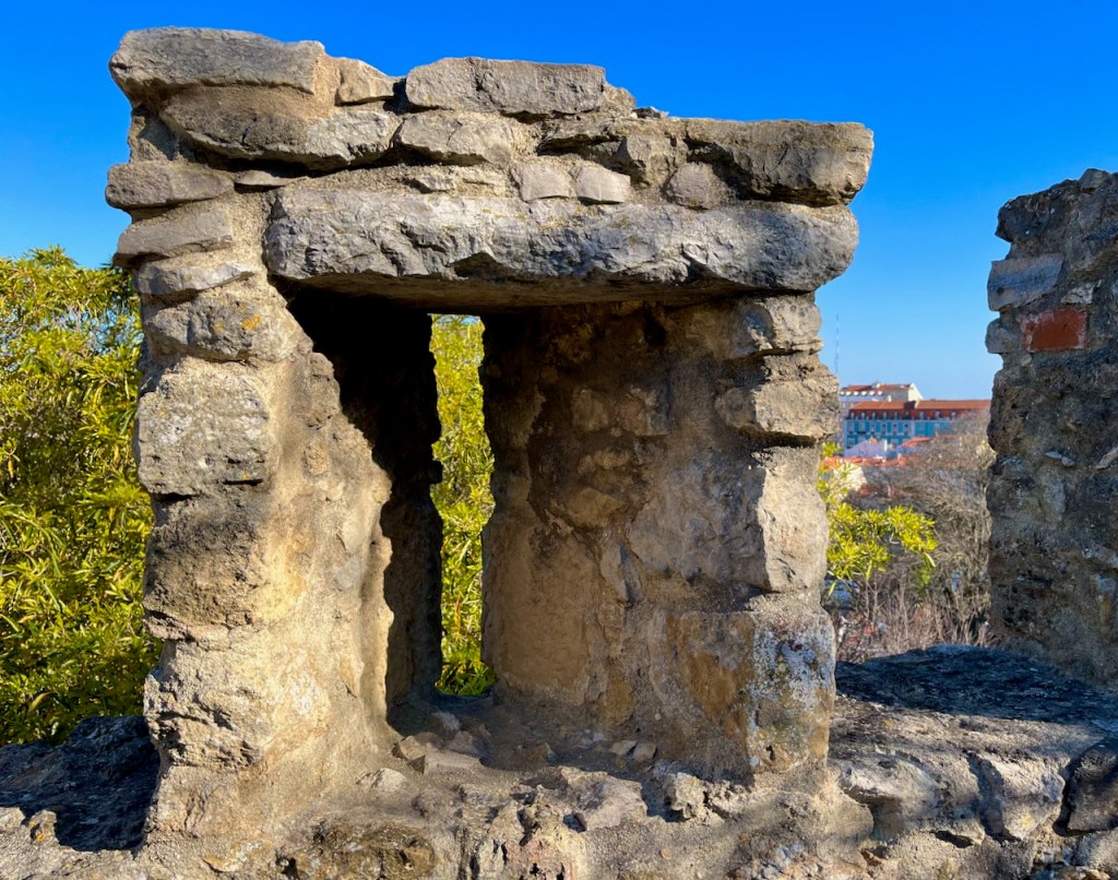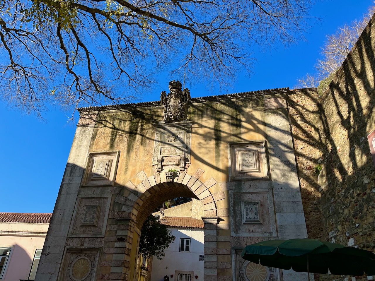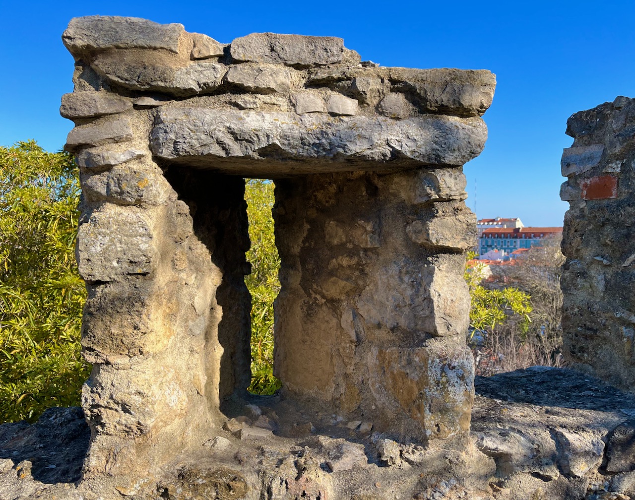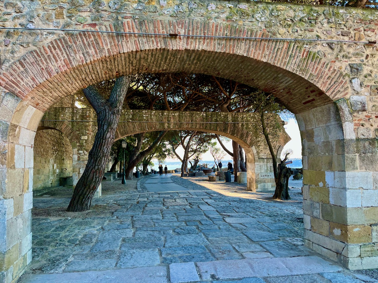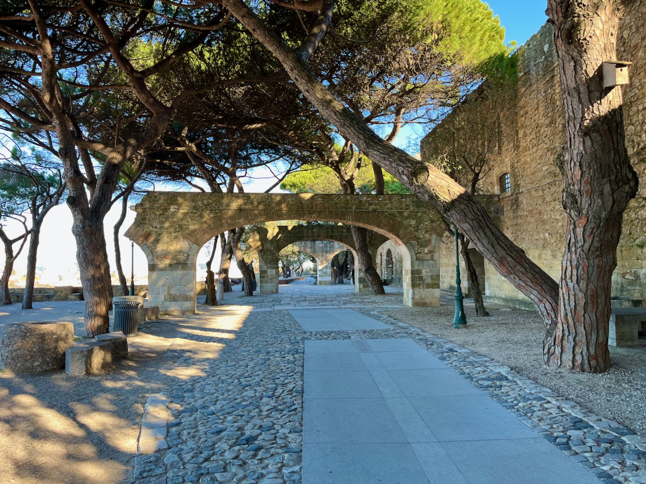 Archways span the walkway outside of São Jorge. This castle’s structure dates back to the first century BC. However, archeologists have confirmed people were living on this hilltop all the way back to the 8th century BC.