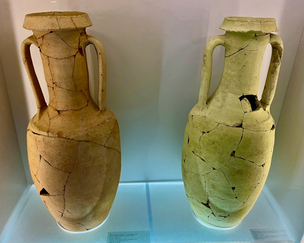 This castle now contains a modern museum where archeologists have exhumed centuries of clues to reconstruct much of the history of this high ground. The challenge is that so many factions fought over this high ground over the centuries, that the winners would obliterate everything left over from the losers. Here are a couple of ancient Phoenician vases painstakingly reassembled from their crumbled bits.