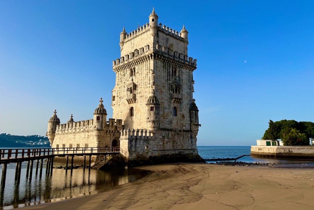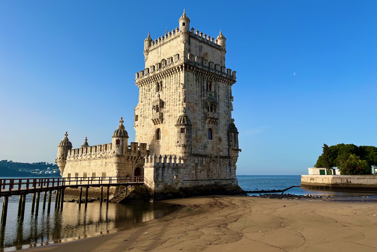 First stop on our second day: Belém Tower stands just off the banks of the Tagus River in downtown Lisbon near the river’s mouth at the Atlantic ocean. Today it’s considered an icon of Portugal’s ‘Age of Discovery’ when Portuguese explorers sailed to the four corners of the globe, colonizing foreign lands, appropriating cultures and enslaving peoples. The tower itself has a varied and complicated history. Originally completed in 1519, it sits on small island. A couple of different Portuguese kings were involved with its construction. It wasn’t up to snuff. After the Spanish captured the tower in a battle, the fortification was enhanced.
