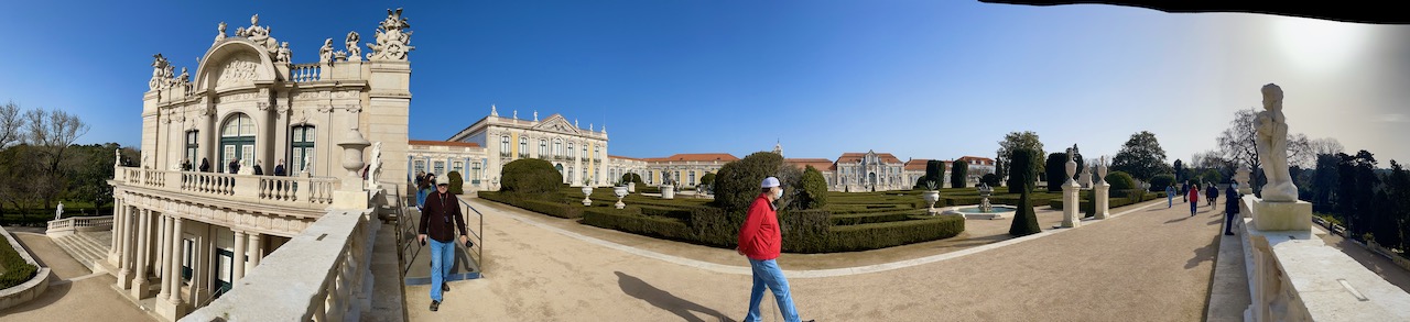 We finally got out into the Queluz palace gardens. Mary took this panoramic shot. You can see Yours Truly to the left. Like some kind of miracle, the aspect of Mary’s iPhone makes me look marvelously thin.