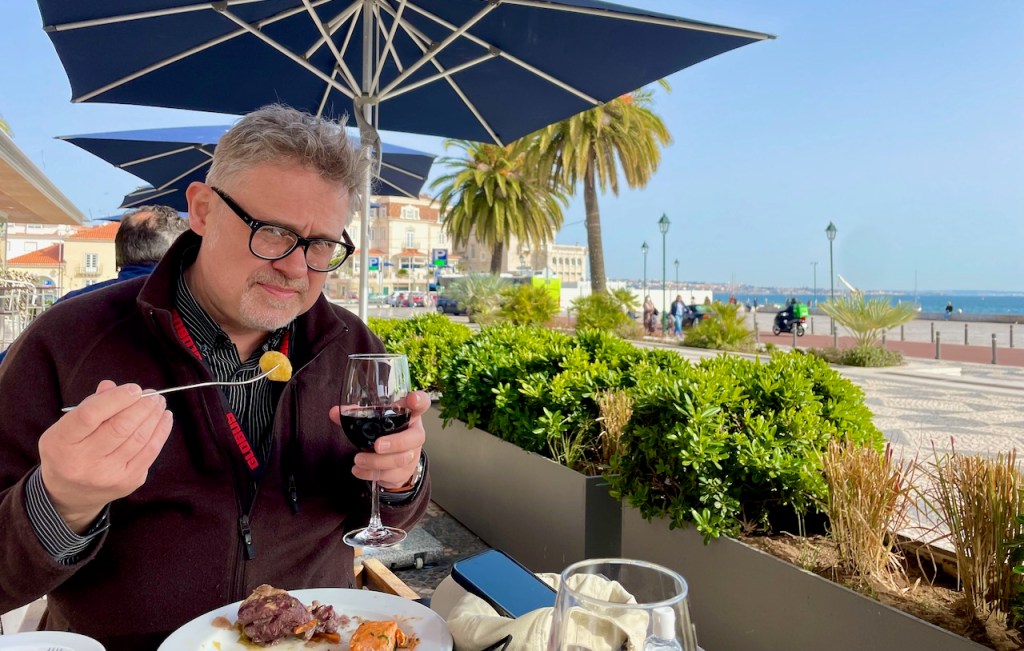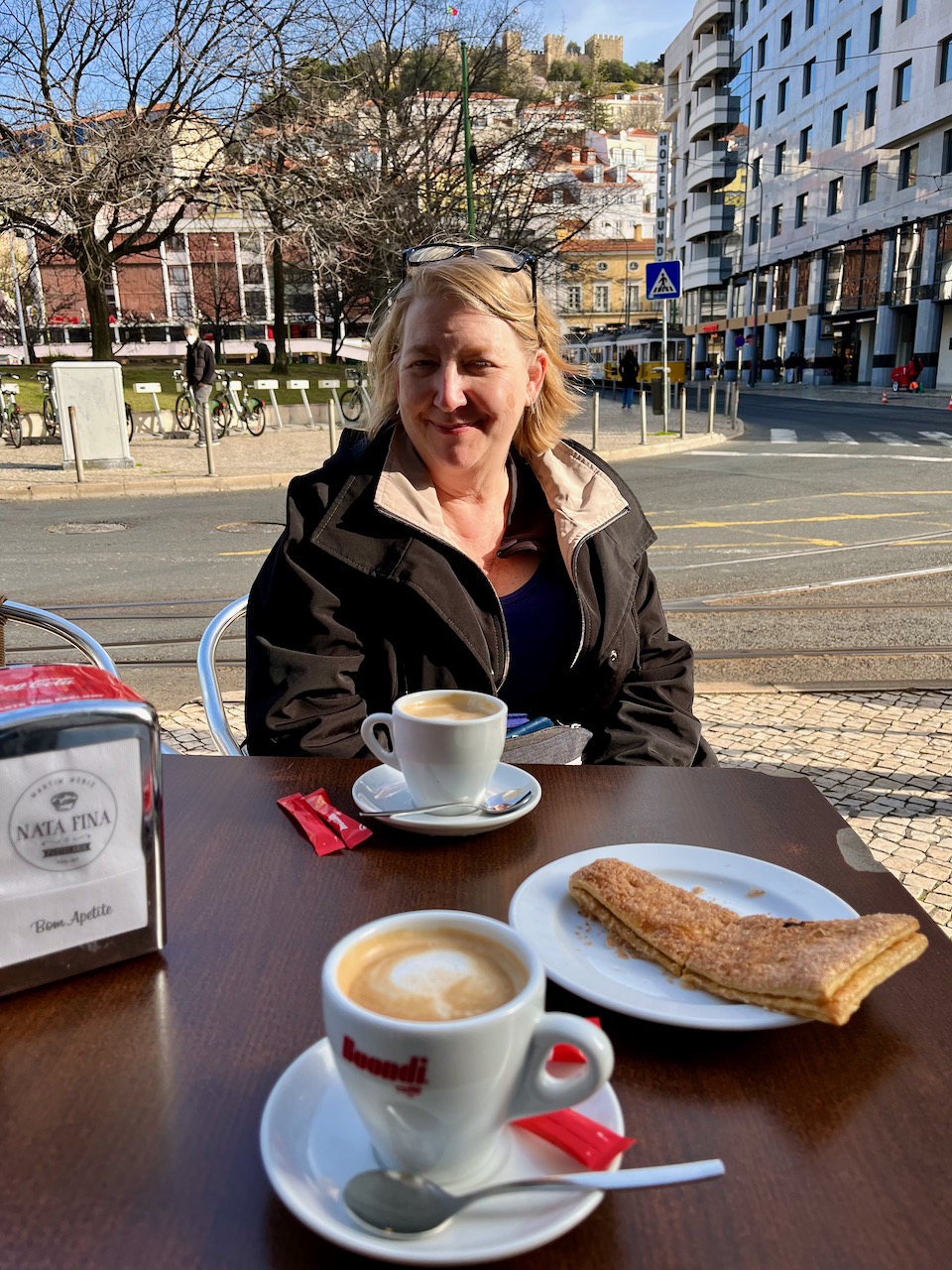 Here’s my sweetheart sitting at an outdoor cafe in downtown Lisbon while we await our test results. They were negative again. In terms of Covid, so far Portugal has been very safe. Fingers crossed for the rest of our stay!