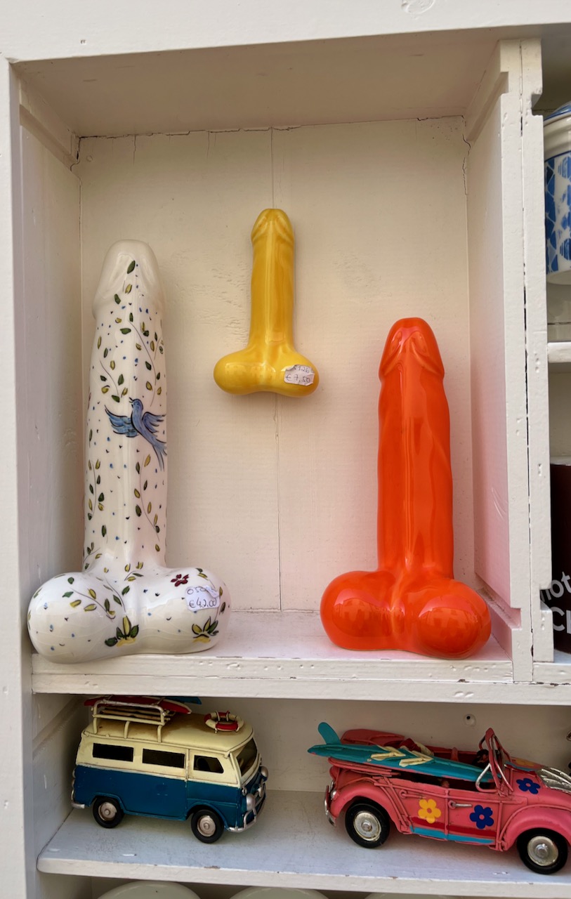 A freakish penis statue with arms and buttocks. Mary would not let me take a photograph of its front.