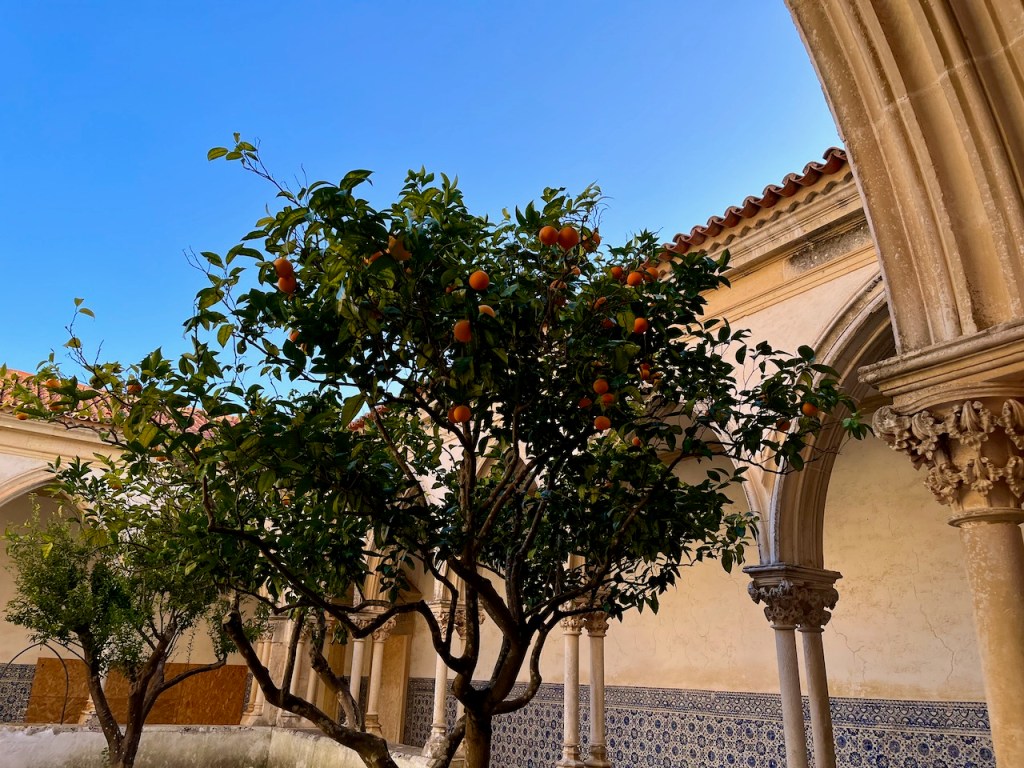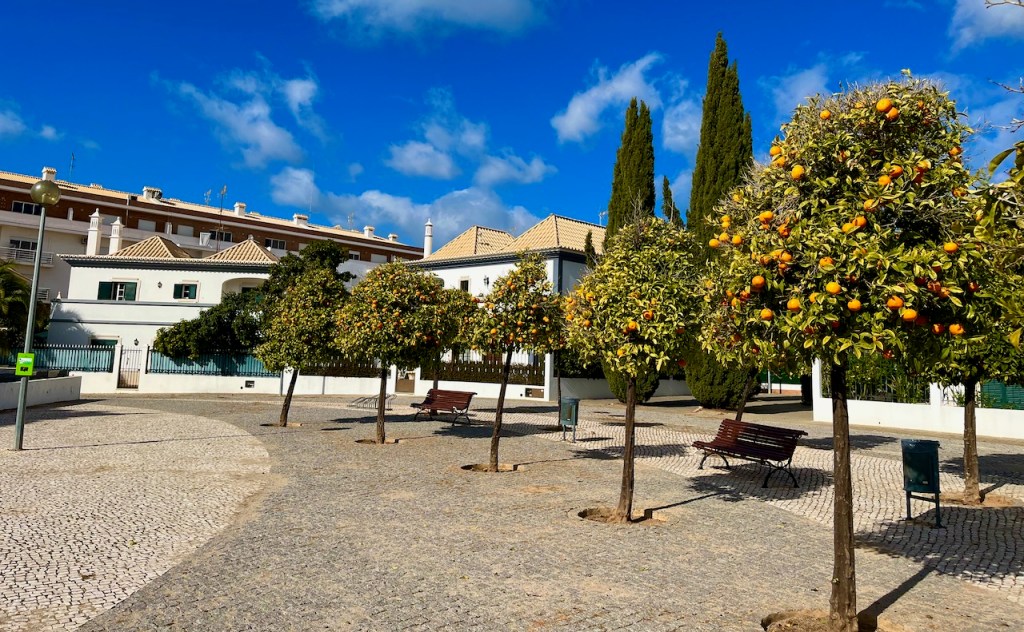 We parked our car on the outskirts of town and walked into town center. This is an example of how you find citrus trees everywhere in the south of Portugal. Out in the rural areas, they are in orchards; in town, groomed trees filled with fruit line the walkways and parks.