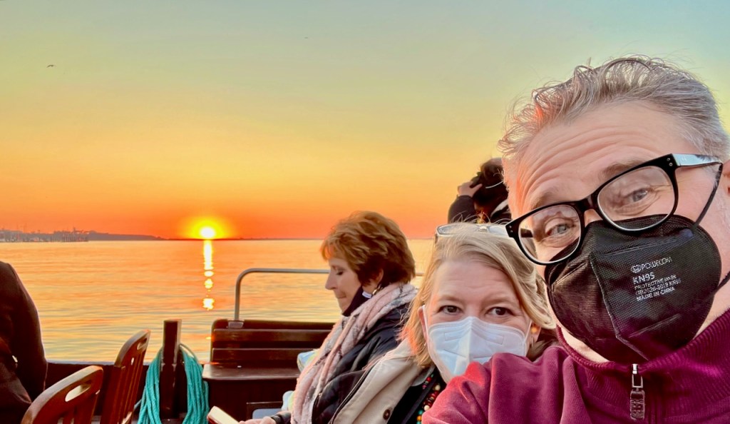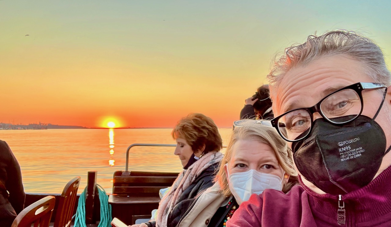 Mary and Yours Truly basking in the winter sun on Lagos Harbor.