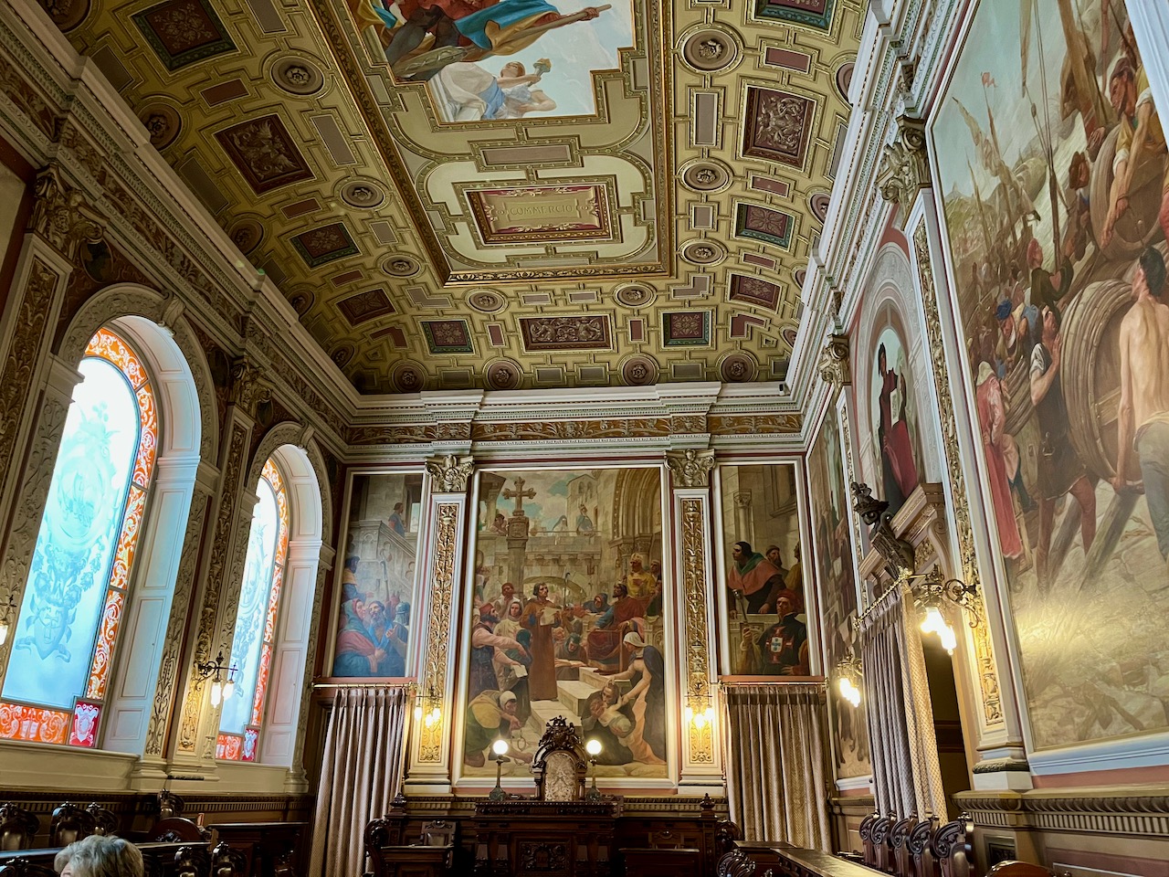 A lot of the interior rooms are lovingly preserved so that we can see today how the royals lived. Presumably this is to remind modern Portuguese citizens that Kings, Queens and their families live opulently, usually on the shoulders of their subjects. Here’s the personal office of the penultimate King of Portugal, King Carlos and his son, Manuel, the LAST King of Portugal. Manuel fancied himself a painter and painted gigantic murals of nudes that till this day hang in this office. I opted to photograph only these two (you don’t know this, but you should thank me). King Manuel I was disposed in 1910. Evidently, he wasn’t a very good king, and he wasn’t a very good painter.