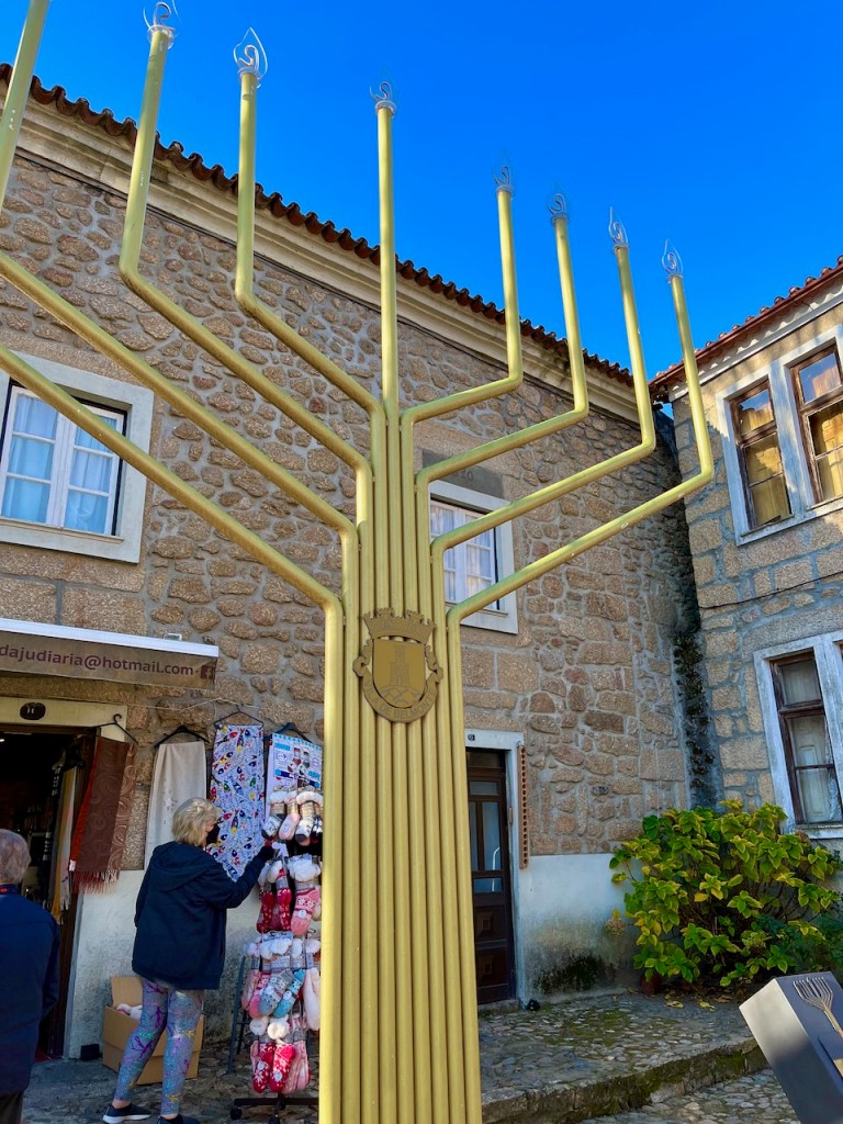 Pictured: a giant menorah in a garden in the village of Belmonte, Portugal.