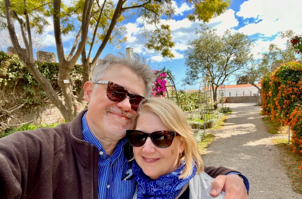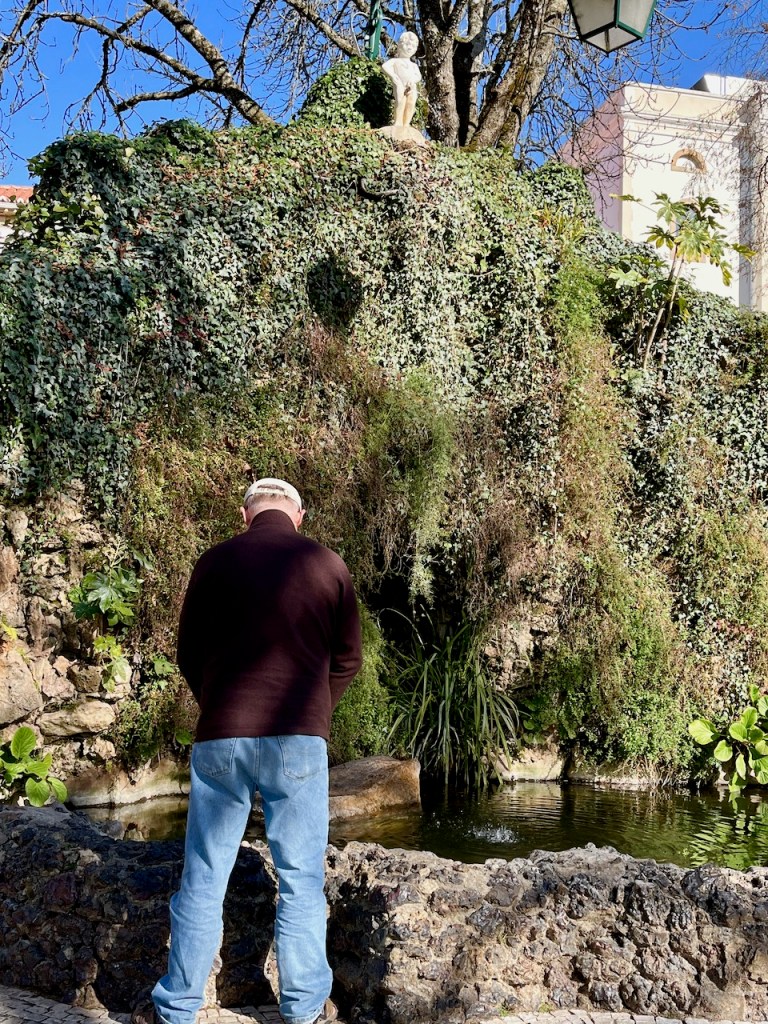 It was Valentine’s Day, and so Mary and I took a selfie in this beautiful garden. Behind us (not pictured) an old Portuguese guitarist was strumming songs of unrequited love.