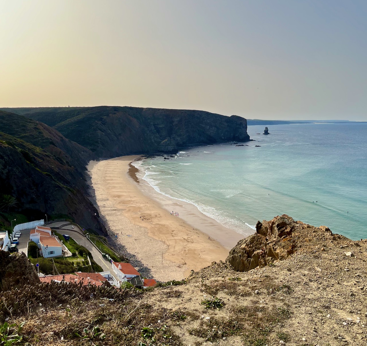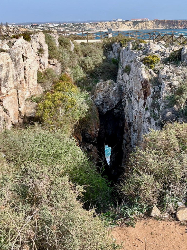 Our Globus motor-coach tour of middle and northern Portugal ended over a week ago and I’m finally catching up to share a few photos since that tour. After a night in the small town of Aljezur, Mary and I headed to a couple of beaches on the southern Atlantic coast along Portugal’s southern tip. This is Praia de Monte Clérigo.