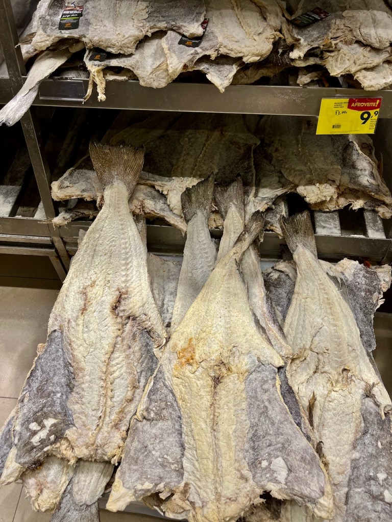 Note: Buying fresh meats and fish is not the same as in the US. Things are not as processed here. Fish come whole, and much of the poultry, beef and other unidentifiable ‘meats’ come barely butchered. Pictured here: some kind of dried and salted fish, stacked like cardboard.