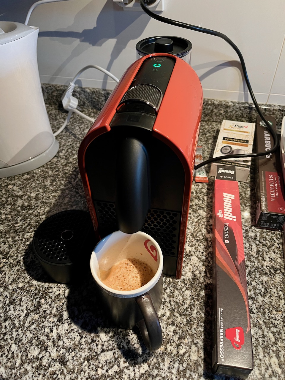We were concerned about the waste involved (like Kurigs in the US), but realized the little packets are made of aluminum and are recyclable.