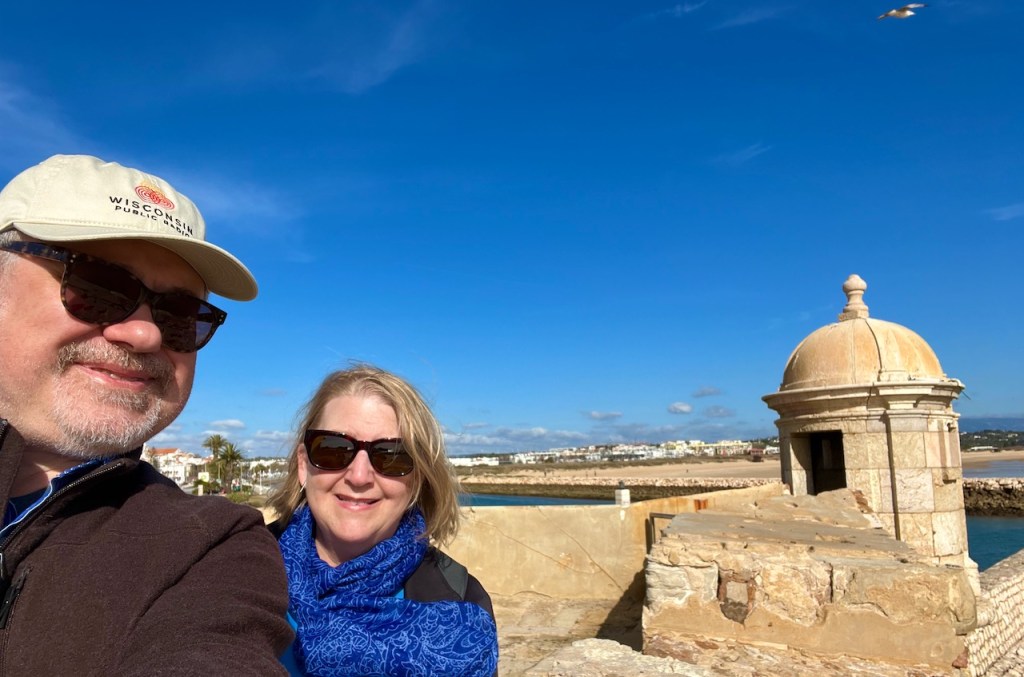 Mary and Yours Truly at the Fort of Ponta da Bandeira on the Atlantic Ocean in Lagos. The fort dates back to 1690.