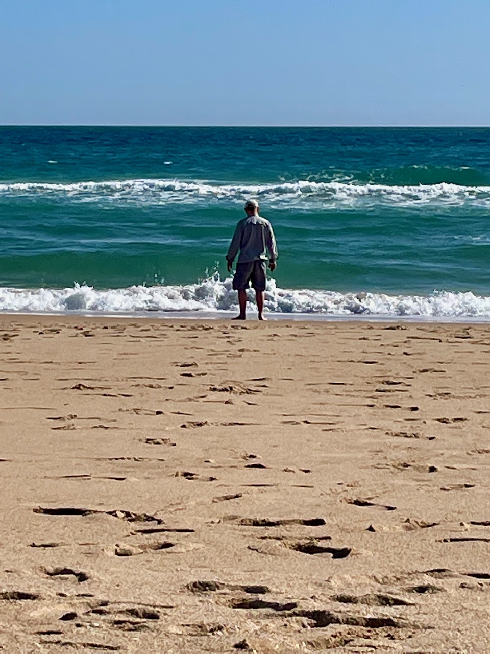 Yours Truly contemplating the ocean at Meia Praia Beach. About two hundred kilometers southeast of me stands Gibraltar.