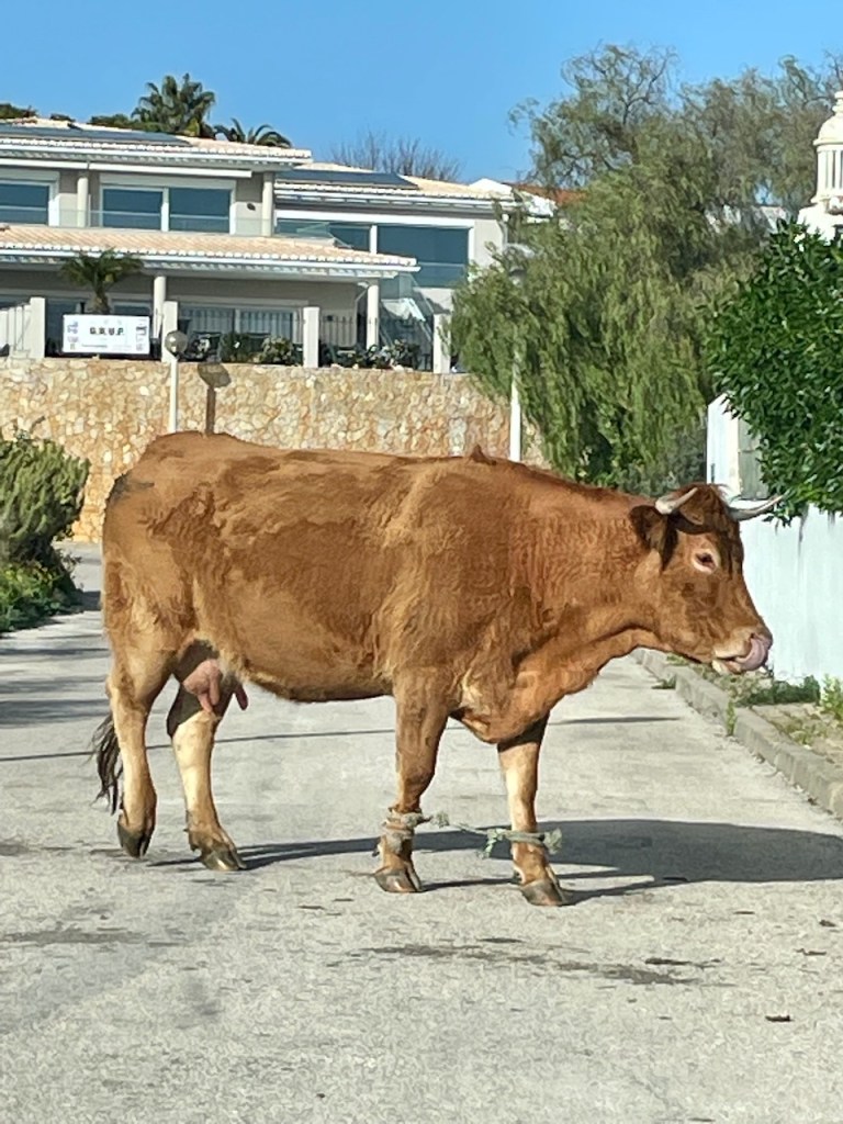Our long stay in Portugal is winding down and we’re becoming used to the curious juxtaposition of urban and rural. Our villa is in the city of Lagos, but it stands on the edge of a cow pasture. In fact, just before the entrance to our parking space is a cow-crossing. On any day you might find Bessie crossing our driveway in front of our car.