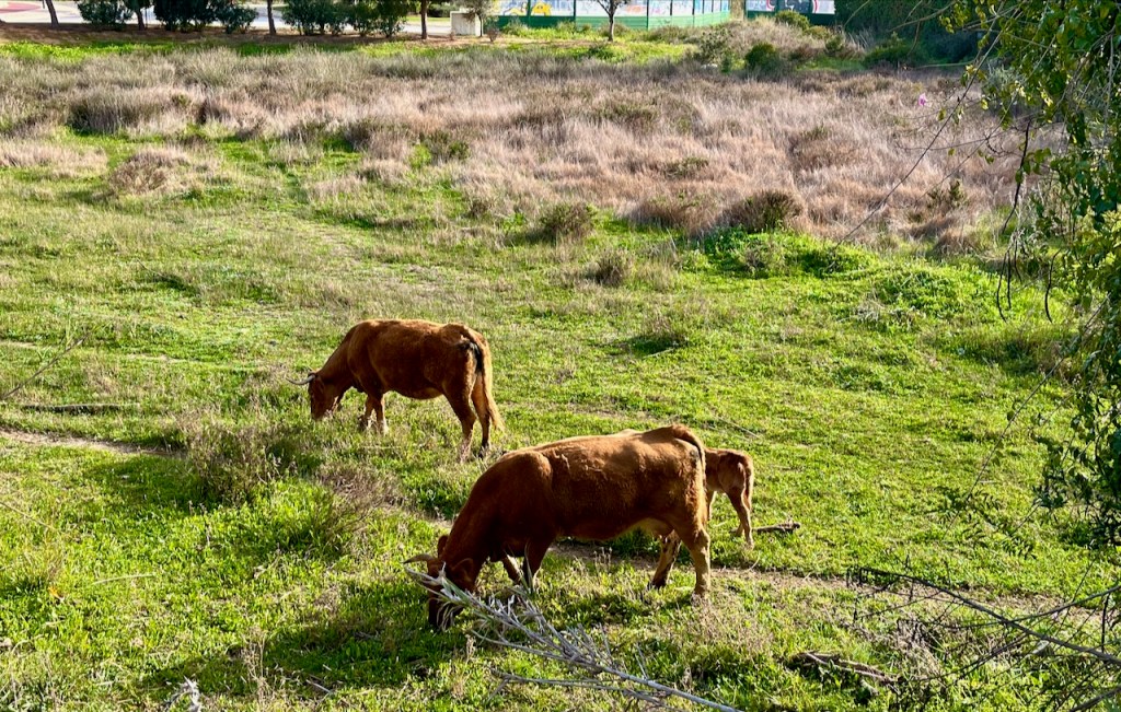 The photo below I took from our villa’s patio next to our pool. Almost daily an entire cow family crosses the driveway to munch grass and defecate behind our villa.