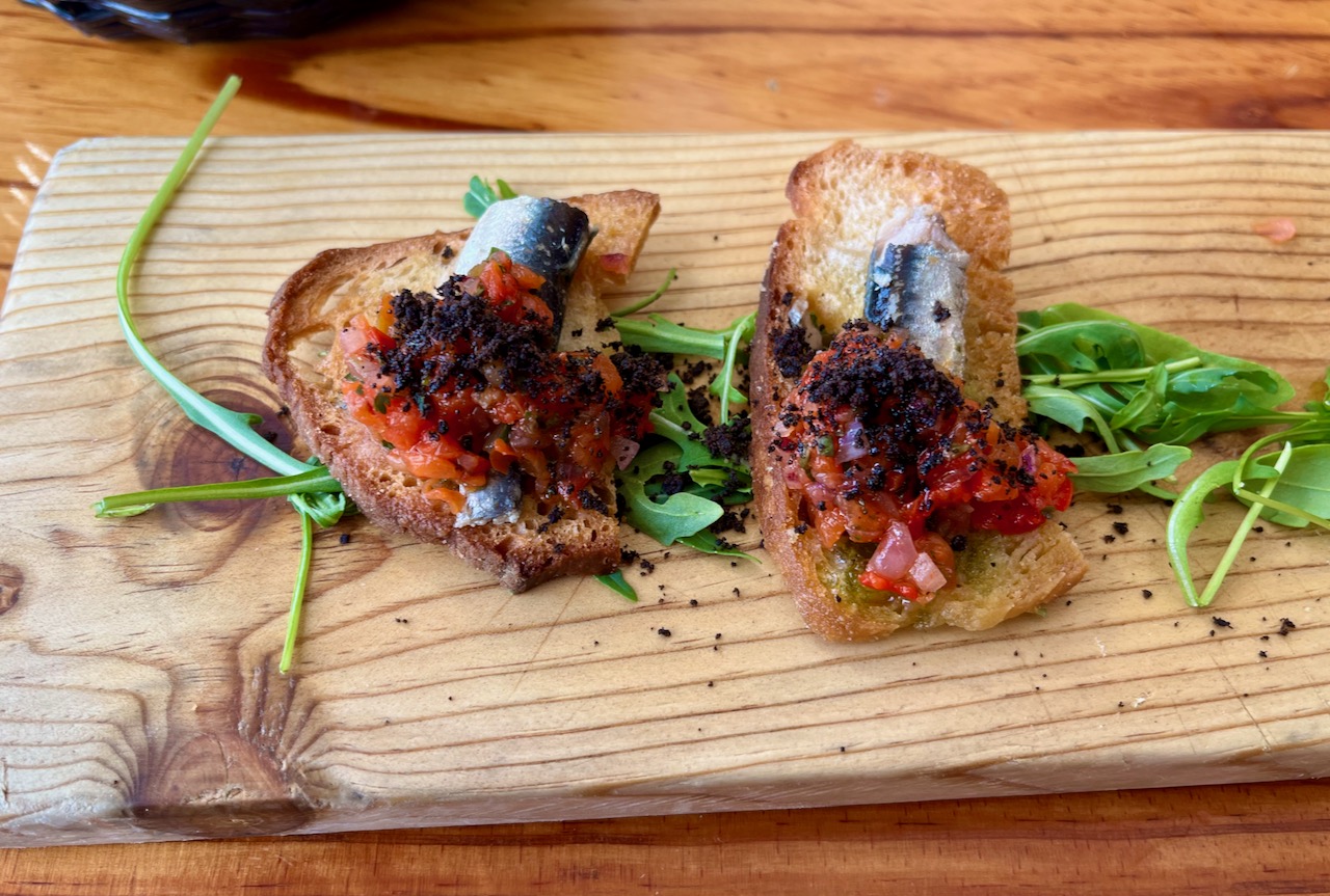 The next day Mary and I had lunch in a shipyard. And here’s something that Portugal does know how to do: sardines. These sardine crostini were delectable. If you love sardines, that’s almost reason enough to move to Portugal.