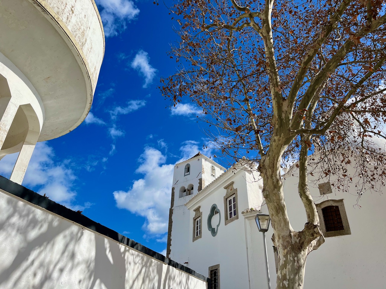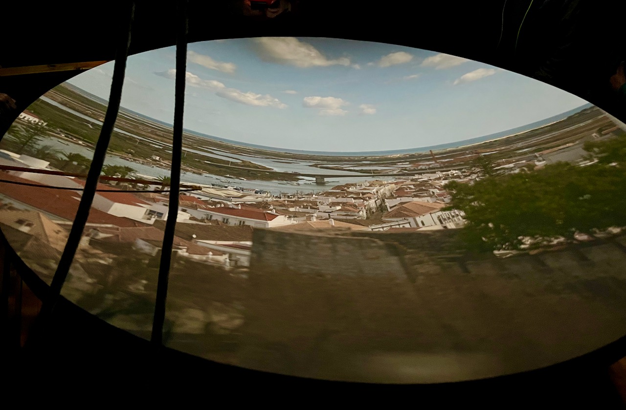 Tavira hosts a restored Camera Obscura. In the shot below you can see the gorgeous white stucco Santiago Church and to the left you can see part of a water tower. A Camera Obscura is housed in that water tower.